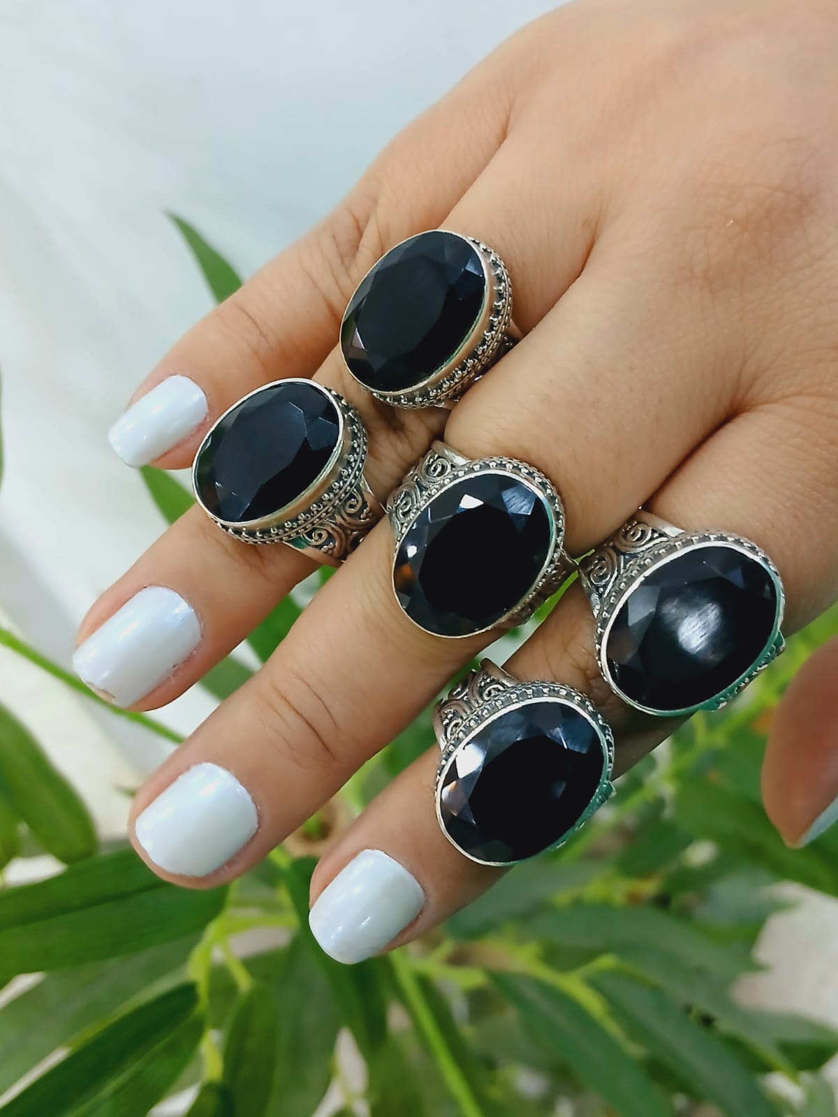 Um anel tamanho 21 artesanal único, produzido em prata 925, com acabamento tradicional da ourivesaria indiana. A peça traz uma pedra natural de ônix lapidada, que ressalta sua cor profunda e elegante.